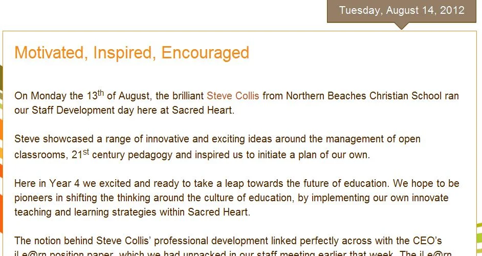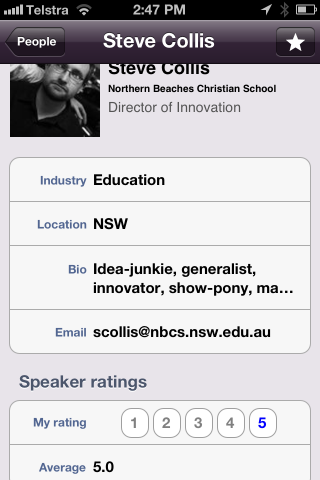 “I found each Innovate session inspiring and challenging. Inspiring because it asked questions of my teaching and practice that gave me new energy and enthusiasm for the classroom. Challenging because Stephen forced us to think outside the box and question how educative processes and thinking are put together. I felt the Innovate sessions demanded more thinking from me, and more reflection. I also enjoyed the interactions with other staff from other schools around each Innovate model or question. I felt Stephen also managed the pace well, and created environments for us to engage and converse around each new model or paradigm. Thank you Stephen.”